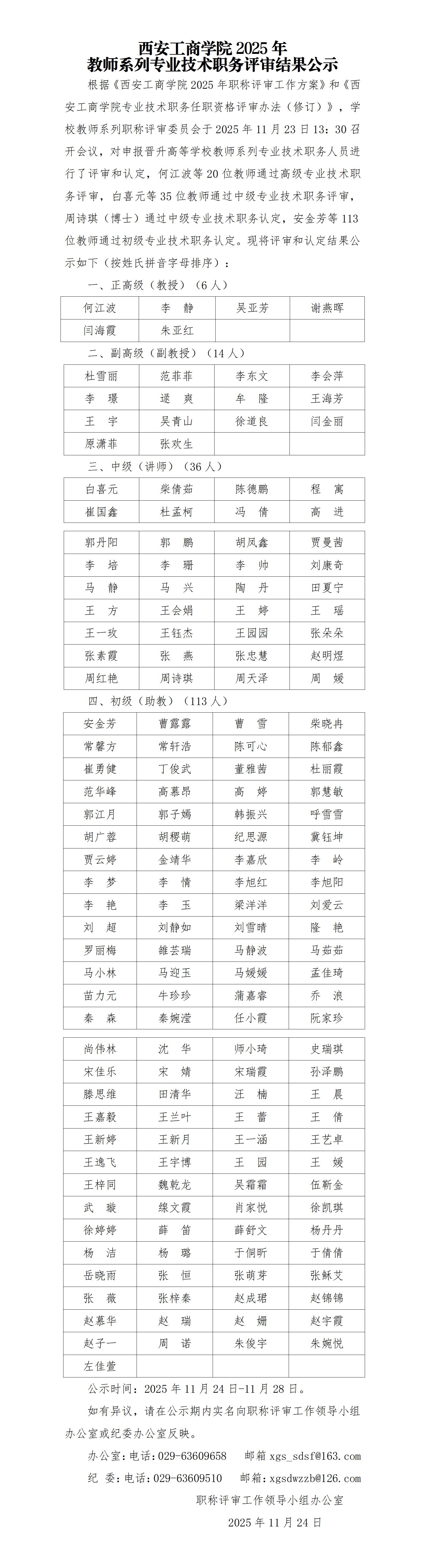 西安工商学院2025年教师系列专业技术职务评审结果公示